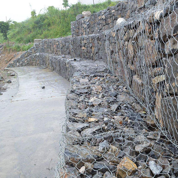 The plastic-covered gabion net is a cages made of hexagonal wire mesh (hexagonal mesh) knitted with two-way twisting of metal wire in one direction using a machine.